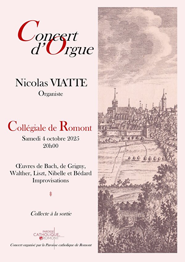 Concert d'orgue donné par M. Nicolas VIATTE, titulaire des orgues de l'église Notre-Dame à Vevey, cotitulaire des grandes orgues à la cathédrale St-Nicolas à Fribourg