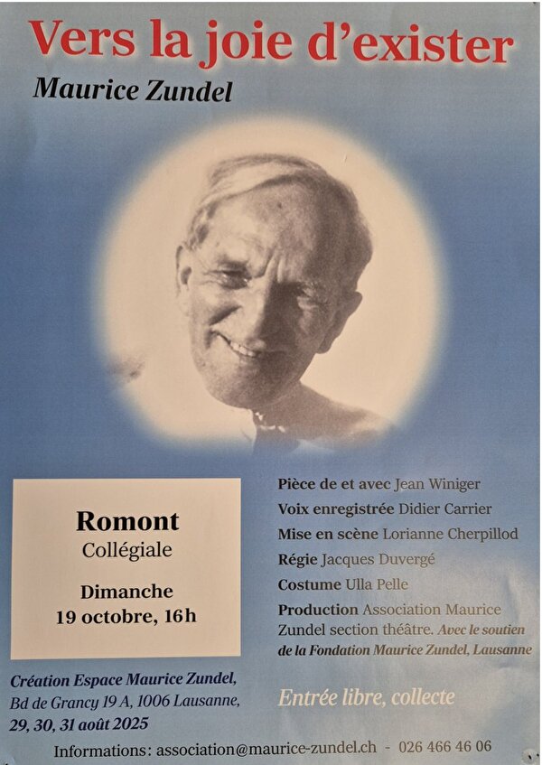 La pièce “Vers la joie d'exister” est créée à l'occasion du 50ème anniversaire de la mort de Maurice Zundel.