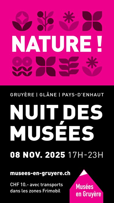 Retrouvez la célèbre Nuits des Musées le 8 novembre 2025. Chacun des musées en Gruyère, Glâne et au Pays-d'Enhaut vous concocte une magnifique soirée avec des animations.
